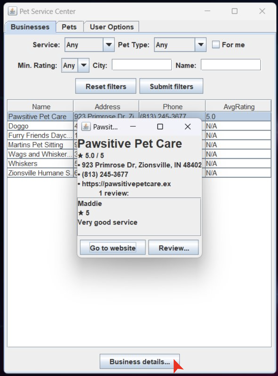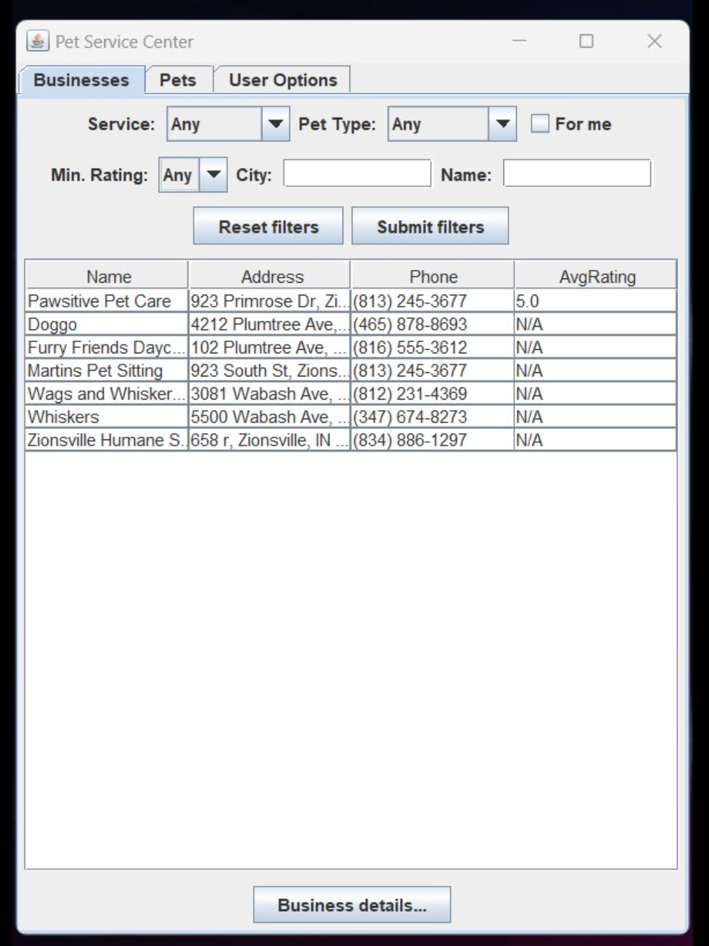 • Developed a Pet Services Locator application utilizing MSSQL for